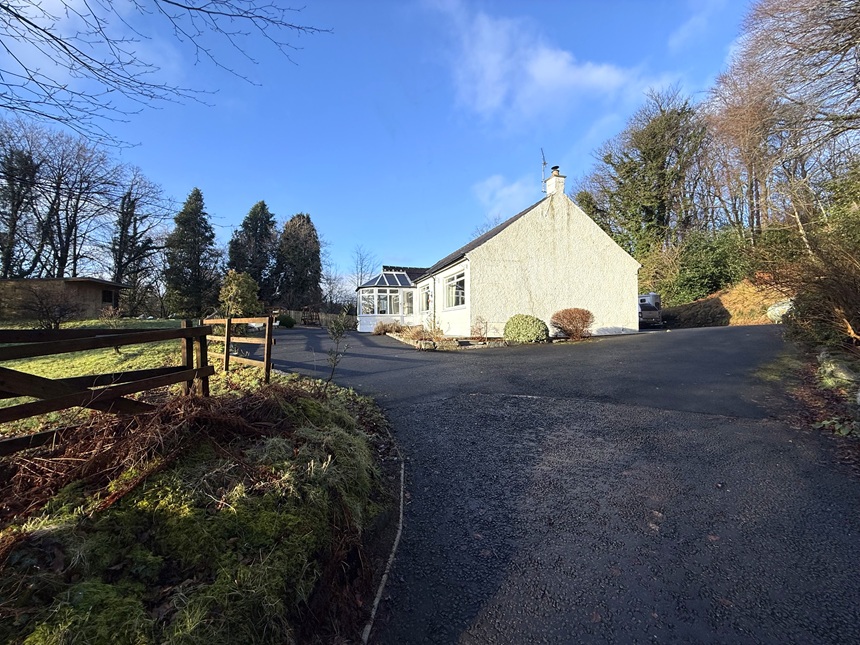 Curchiehill occupies a generous plot and is approached via its own sweeping tarmac driveway, providing ample parking for several vehicles. The house benefits from gardens extending around the property, predominantly laid to lawn, along with an Indian sandstone patio to the front. The property extends in total to just under one acre.